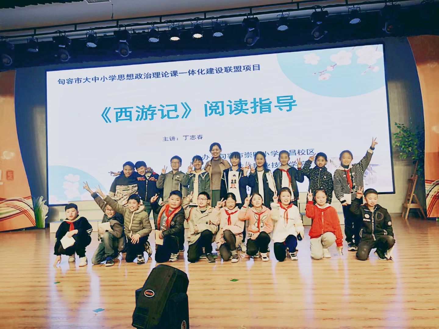 4月22日,马克思主义学院丁志春副教授受邀到句容市崇明小学文昌校区开展《<西游记>阅读指导》讲座。在丁老师的带领下,该校五、六年级的同学们寻找到多个切入点、以多种形式参与其中,感受栩栩如生的人物形象和精彩语言,感受名著的魅力,享受了一场传统文化经典阅读盛宴。此次活动是马克思主义学院推进句容市大中小学思政一体化联盟建设系列活动之一。