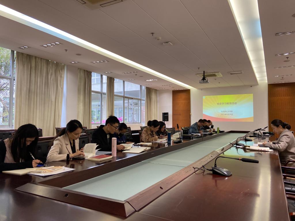 4月28日下午,马克思主义学院直属党支部在图书馆一楼会议室进行党史集体学习活动。支部党员和党外教职工一起学习了新民主主义革命时期加强党的建设、推进马克思主义中国化和开展整风运,人民解放军转入战略进攻,夺取全国胜利纲领的制定实施和人民民主统一战线的巩固扩大以及党的七届二中全会和筹建新中国等内容。本次集体学习活动由党员张春明同志领学,全体党员参与了学习研讨。