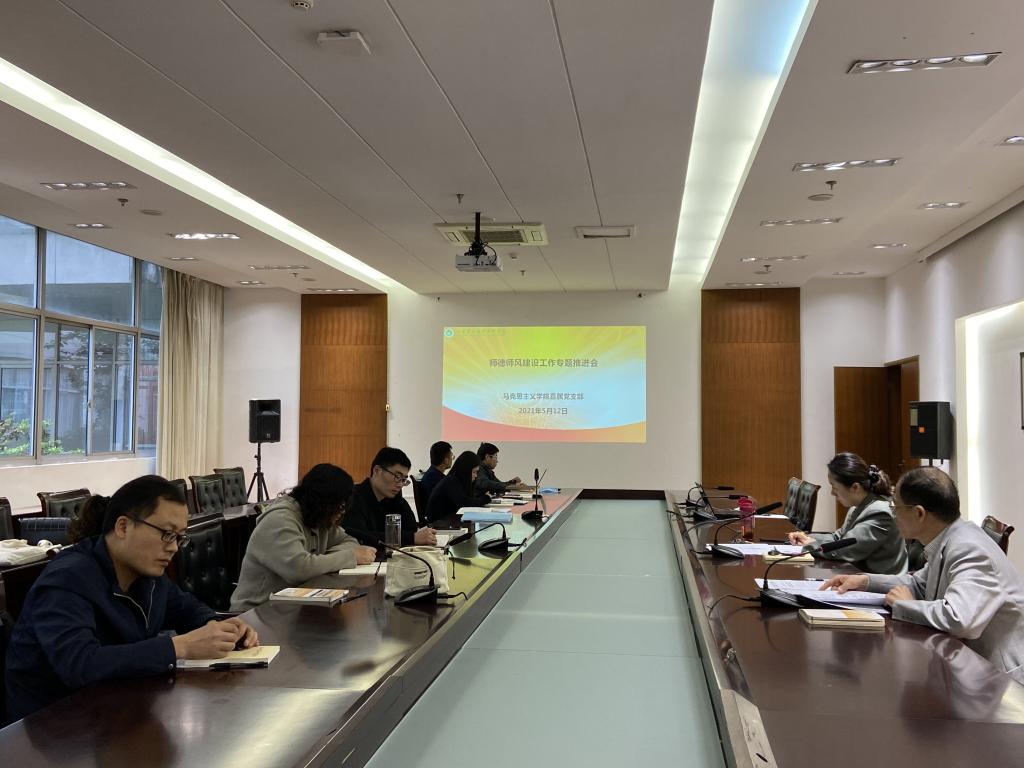5月12日下午,马克思主义学院在图书馆一楼会议室召开师德师风建设工作推进会。会议由学院书记、院长马万顺同志主持,全体教职工参加会议。