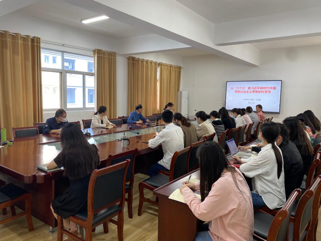 为扎实推进习近平新时代中国特色社会主义思想主题教育,5月26日下午,马克思主义学院党总支副书记、院长马万顺为我院党员教师上了一堂题为《从“六个三”看习近平新时代中国特色主义思想的科学性》的主题教育专题党课。我院中层干部、各内设机构负责人及党员同志参加学习。